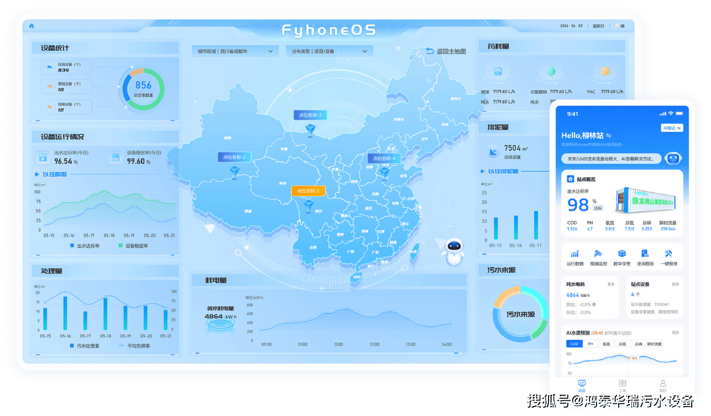 更省心的是,鸿泰华瑞的设备搭载飛鸿智能控制系统,可实时监测COD、氨氮、总磷等关键水质指标,自动调节运行参数,确保出水水质稳定达标。运维人员无需天天现场巡检,通过飛鸿手机APP或电脑端即可远程管控,大幅降低运维成本和人力投入;同时无需专人24小时值守,智能加药设备自带智能监测和自动报警功能,药剂不足、设备故障时会第一时间推送提醒,方便及时处理。此外,设备采用耐腐蚀、抗低温特殊材质,完美适配新疆气候与水质条件,破解当地运维人员短缺难题。